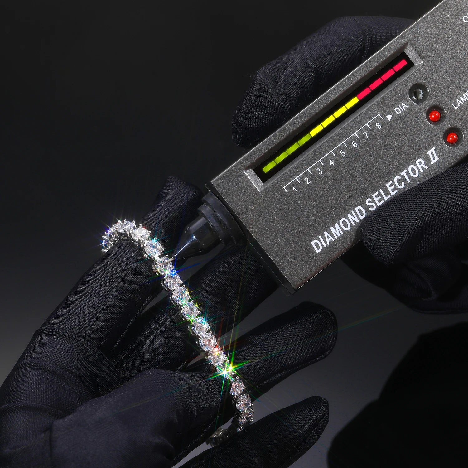 Elevate your wrist game with this stunning moissanite tennis bracelet that commands attention. Crafted from solid 925 sterling silver and finished with luxurious 18K white gold plating, it features brilliant VVS1 D-color moissanite stones that sparkle with unmatched intensity. Every bracelet arrives GRA certified, guaranteeing authenticity and exceptional quality you can trust. Perfect for any occasion—from formal events to everyday wear—this versatile piece works beautifully for both men and women. The prong setting showcases each stone's radiance, while the timeless design pairs effortlessly with any style. Make a statement with jewelry that delivers genuine luxury and undeniable sparkle. Available in customizable sizes to fit your wrist perfectly.